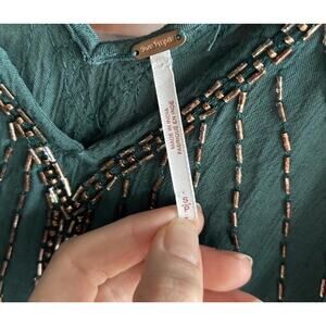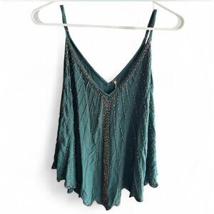 Free People Emerald Green Women’s Beaded V-neck Tank Top Size S Boho Glam