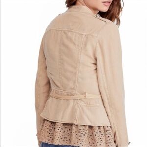 Free People Emilia Jacket Tan Linen Military Lace Hem Sz XS