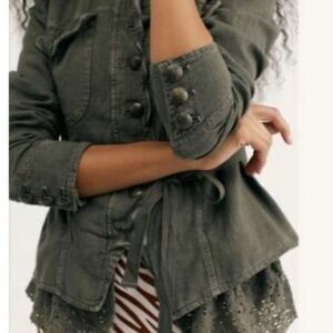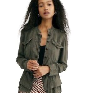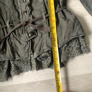 Free People Emilia Olive Green Military Jacket Size XS distressed ruffle lace