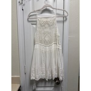 Free People Emily Dress White Crochet Square Neck Tiered Mini Dress Size XS