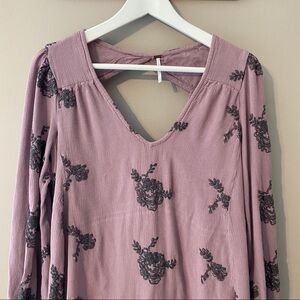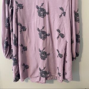 Style: Emma dress elderberry. embroidered long sleeve dress with pockets on each side.