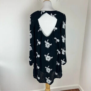 Free People Emma’s Dress Embroidered Gauzy Swing Dress Black White Floral Sz XS