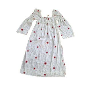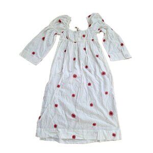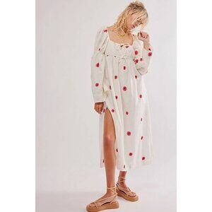 Free People Emory Embroidered Midi Dress White/Red S/P A001147