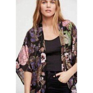 Free People Enchanted Blooms Kimono Cardigan Topper Sheer Floral One Size
