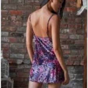 Free People Enchanted Velvet Paisley Mini Slip Dress S Fairytale Combo V-Neck