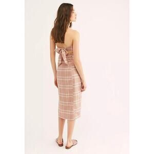Free People Endless Summer Life Like This Plaid Strapless Midi Dress Brown Large