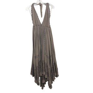 Free People Endless Summer Norina Maxi Dress Taupe Brown Halter Open Back SMALL