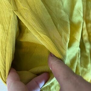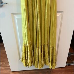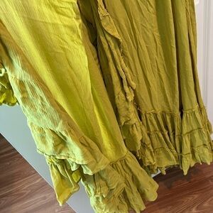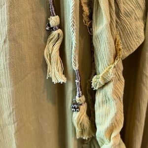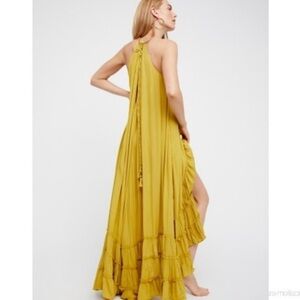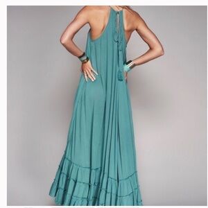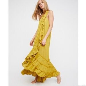Made from our semi-sheer and gauzy Endless Summer fabric, this shapeless maxi wrap dress features a ruffled hem and a high crisscrossed neck with hip pockets. Open slit in back with an adjustable tie accent at the back neck.