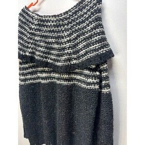 Free People Engineer Black White Striped Cowl Neck Wool Sweater Oversized S