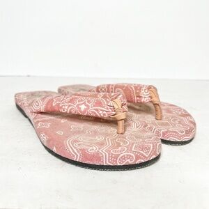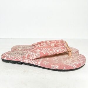 Free People Es Verda Bandana Pink Cotton Thong Sandals Flip Flop Size 5 Women’s