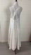 Features: Soft cotton-linen blend, scoop neckline, button-front detail, pockets at front, gathered bottom skirt, lace trim, crisscross backstraps, lined skirt