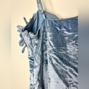 Stand out in this so special mini dress featured in a gorgeous brushed velvet fabrication with defined floral detailing at bust for a forever femme touch. -