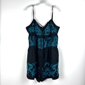Free People Everblue Romper Black Blue Adjustable Straps Embroidery Womens Sz L