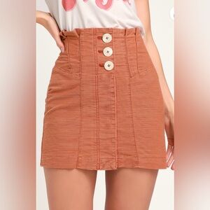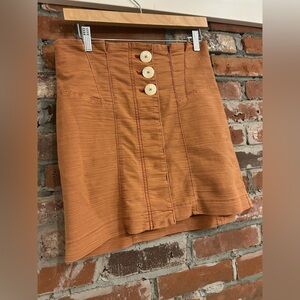Free People Every Minute Every Hour Terra Cotta Button-Up Mini Skirt Size 4