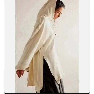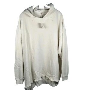 NWT Free People Everyday Hoodie Size M/Large Distressed Hoodie Sweatshirt Oversized Harbor Fog Ivory color Oversized silhouette with intentional distressing-holes and frayed hem. Side zippers to style in different ways and add Size Medium will also fit size Large 100% cotton Chest: 28”, Length Front: 29” Back: 33” MSRP: $168
