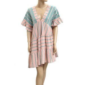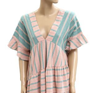 Free People Everyday Living Oversized Tunic Dress Striped Print Ruffle S 283137