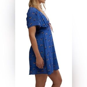 Free People Everyone’s Favorite Mini Dress Blue Floral with delicate tie NWT S M