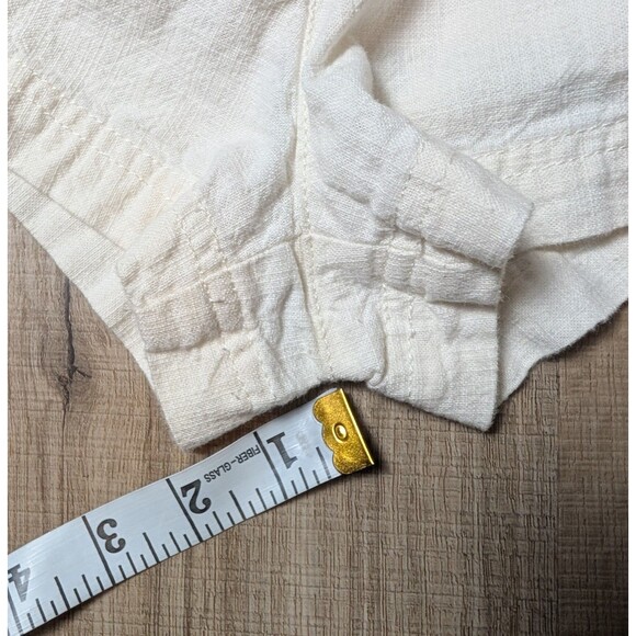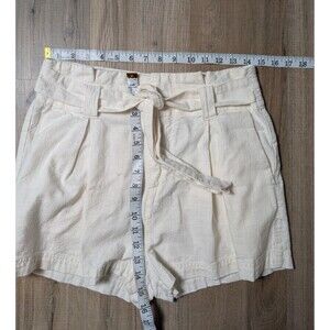 These Free People Everywhere You Go Paperbag Shorts in size 6 are a stylish and versatile addition to any woman's wardrobe. Made from 100% cotton with a light fabric wash, they feature a solid cream color with a tie-front closure and pleated front design. Perfect for travel, parties, casual outings, and more, these shorts have a bohemian, festival-inspired theme that is both trendy and timeless.