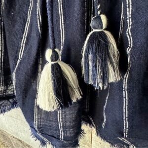 Beautiful blue with white striped top with tassel tie front