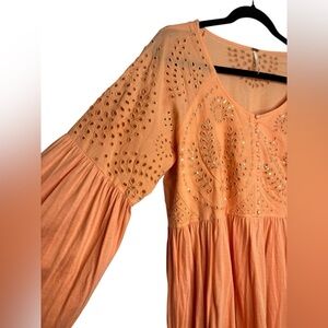 Free People Eyelet Embroidered Sea Of Love Blouse In Sun Blush Size Large