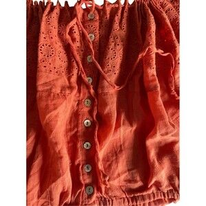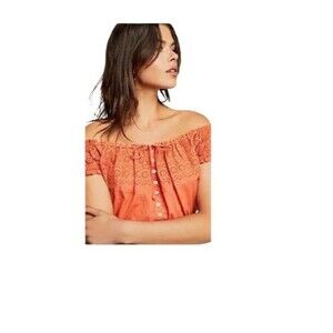 Free People Eyelet You A Lot Top Embroidered Buttondown Crop Off Shouler NWT LRG