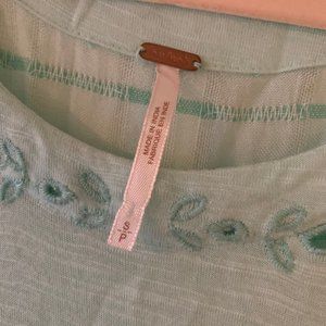 Light blue flowy Free People top with eyelet detail, short sleeve