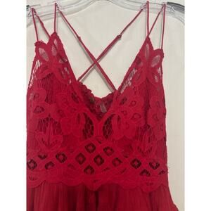 Free People FP Adella Cami Red Crochet Small Strappy Smocked Tiered