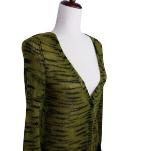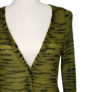Free People FP BEACH Moss Green Mohair Tiger Stripe Cardigan Size M