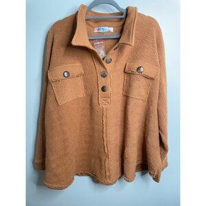 Free People FP BEACH Rowan Oversized Pullover Henley Sweatshirt Top