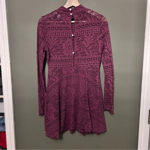 Free People FP Beach Crochet Lace Dinner Date Mini Dress in Plum Small