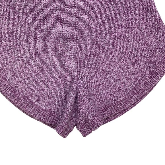 This Free People FP Beach women's Cruising Sweater Short combines comfort with style due to it's relaxed oversized pull-on fit, elastic waist, high rise, sweater knit, ribbed trim, rounded bottom hem and purple shade.
