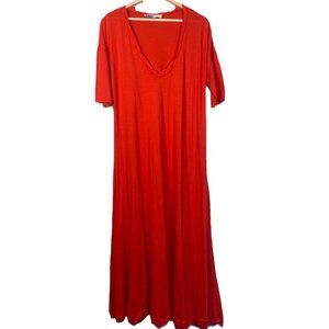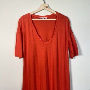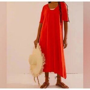 Free People FP Beach Dress Women M Medium Tomato Short Sleeve Stretch Midi Shirt