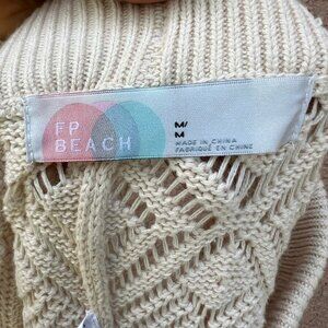 Free People FP Beach Get Away Fauxchet Cardigan Pants Set Crocheted Size M Cream