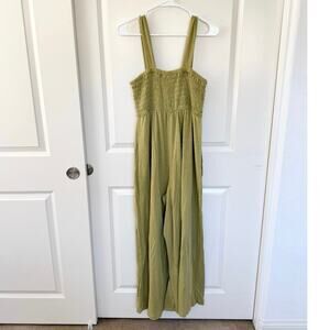 Free People FP Beach Linen Blend Homecoming Wide Leg Jumpsuit Green Medium