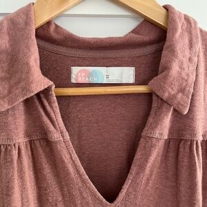 Free People FP Beach Moonlight Midi Mauve 100% Hemp Cotton Tiered Skirt Midi Length V Neck Collar Oversized fit Excellent condition - no rips, tears, stains or snags Women's Size XS (quite oversized - would easily fit up to a Medium) Boho, Bohemian, Free People, Beach Dress, Beachy, Maximalist, Witchy, Fall Dress, Dusty Pink, Long Sleeves, Collared Dress, Prairie Dress, Cottage Core, Lagenlook