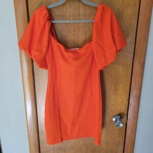 Free People FP Beach Orange Puff Sleeve Ribbed Dress M NWT Holiday Party Resort