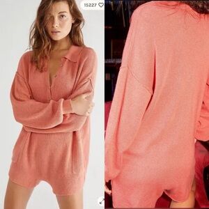 Free People FP Beach Picnic Ribbed Knit Romper salmon pink size Large