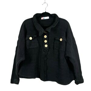 Free People FP Beach Rowan Textured Pullover Sz S Black Oversized