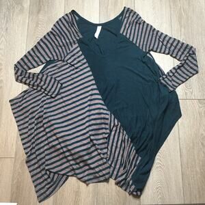 Free People FP Beach Womens Asymmetrical Tunic Top Striped Long Sleeve XS