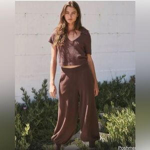 Free People FP Beach brown Nolan short sleeve v-neck top harem joggers set