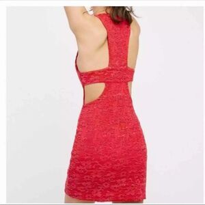 Free People FP Intimates Vivian lace red mini dress with back cutouts