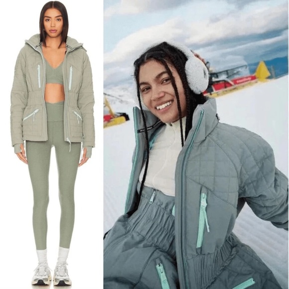 Free People FP Movement All Prepped Ski Jacket M Greyed Olive Sage Winter Snow