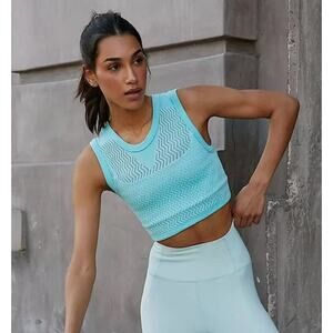 Free People FP Movement FREE THROW Textured Muscle Tank Cyan Blue M/L NWOT $40