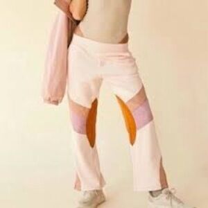 Free People FP Movement Flurry Track Pant Color Block Cream with Tan/Brown