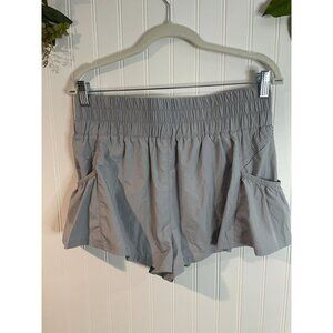 Free People FP Movement Get Your Flirt On Shorts Wide Waist Arctic Mist Gray M