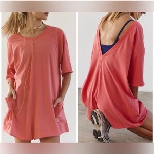 Free People FP Movement Hot Shot Tee Romper hibiscus tulip pink small New pocket