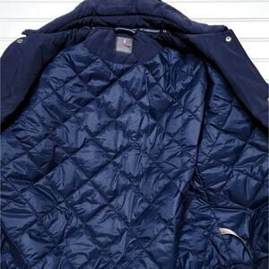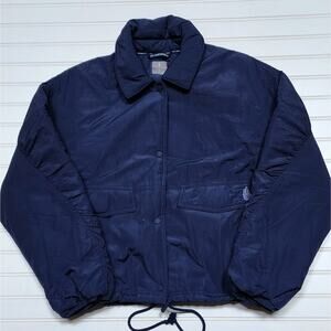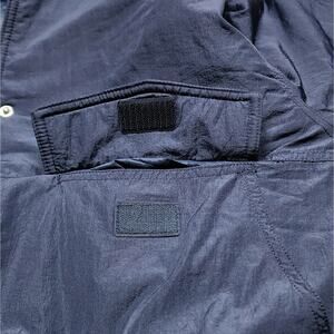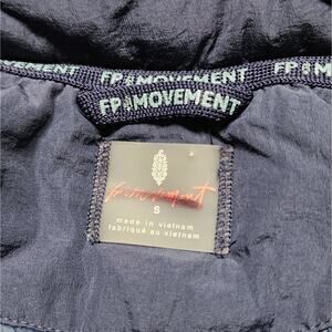 Free People FP Movement Off The Bleachers Coaches Navy Women's Jacket, size Small, navy blue, top and side entry front pockets, adjustable drawcord hem, elastic cuffs, 100% Polyamide, excellent like new condition.