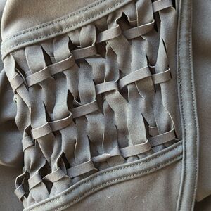 Style Features: Solid, Macrame cutouts, Cinched waistband