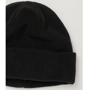Free People FP Movement Spellout Fleece Flat Out Cuffed Beanie Hat in Black
