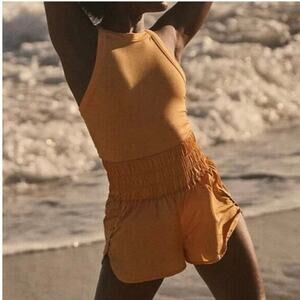 Free People | FP Movement The Way Home Runsie Romper in Marigold Yellow